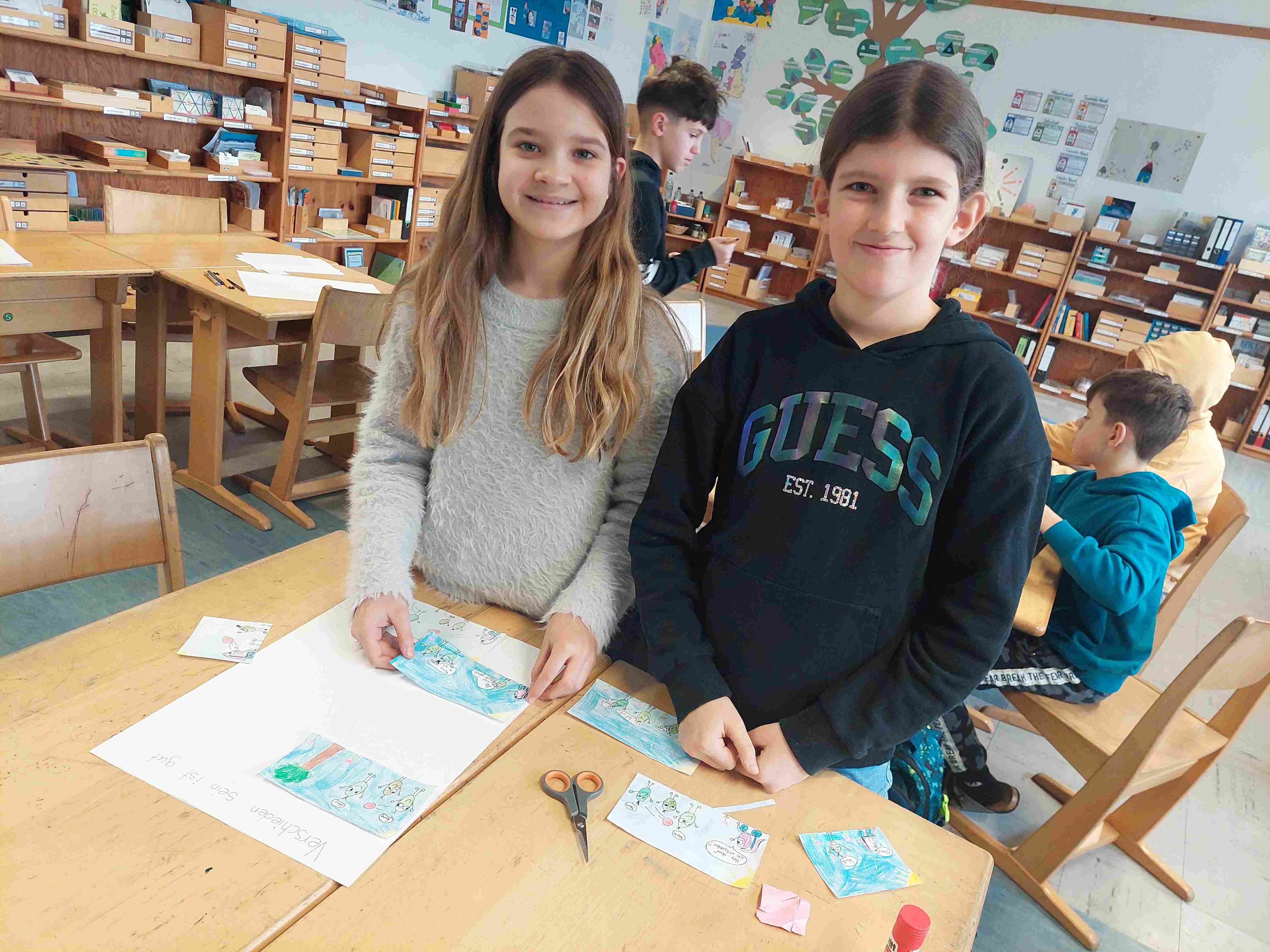 Zunächst lernten die Schülerinnen und Schüler verschiedene Gedichtformen kennen und verfassten eigene Texte. So entstanden spannende Treppengedichte, Akrostichons und viele weitere kreative Gedichte.