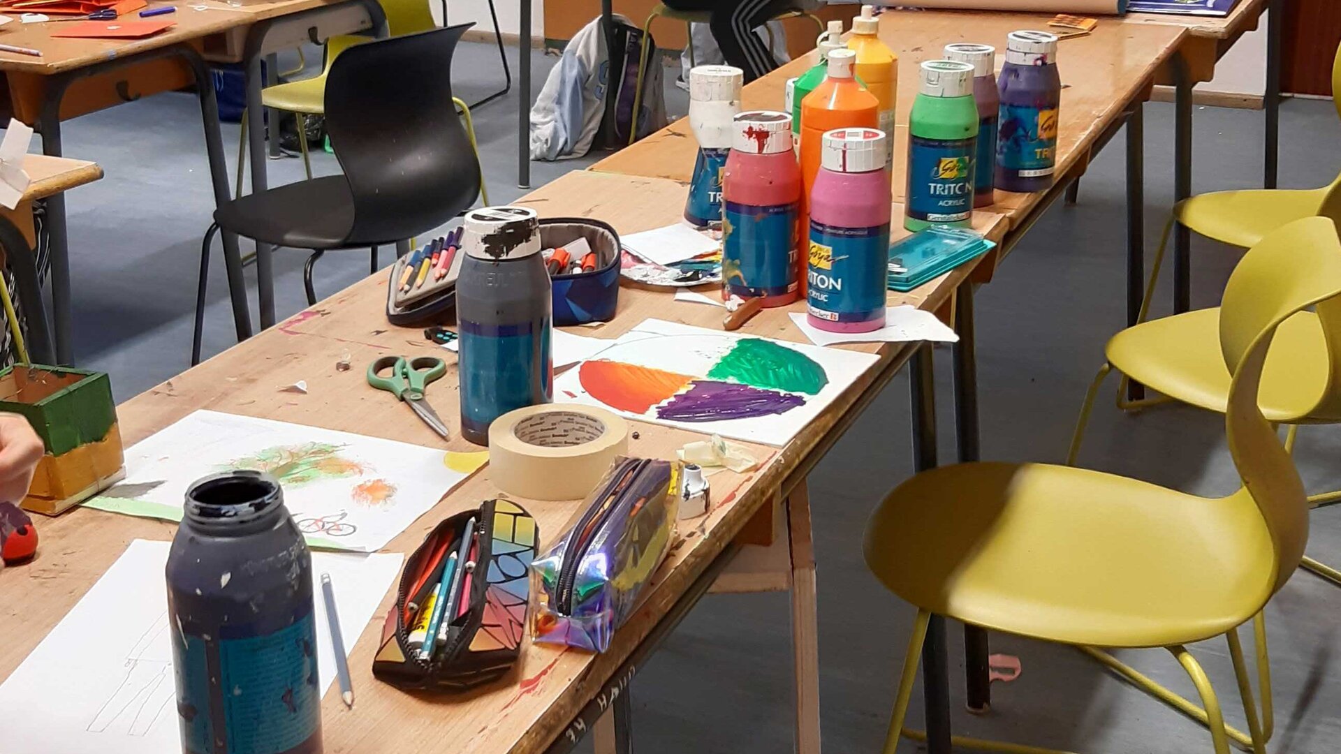 In diesem Kurs dreht sich alles um das Thema Farben. Wir stellen die Farben selbst her und gestalten schöne Dinge daraus. Wir malen Bilder, hören und singen Farben-Lieder, erleben Farb-Spiele. Das Schaffen von Kunst lenkt unsere Gedanken ab und entspannt so unseren Geist. Wir können Gefühle ausdrücken, die manchmal schwer in Worte zu fassen sind und Sorgen können zur Seite gelegt werden. Du kannst nichts falsch machen! Der Kurs ist für ALLE Schülerinnen und Schüler unserer Schule offen !