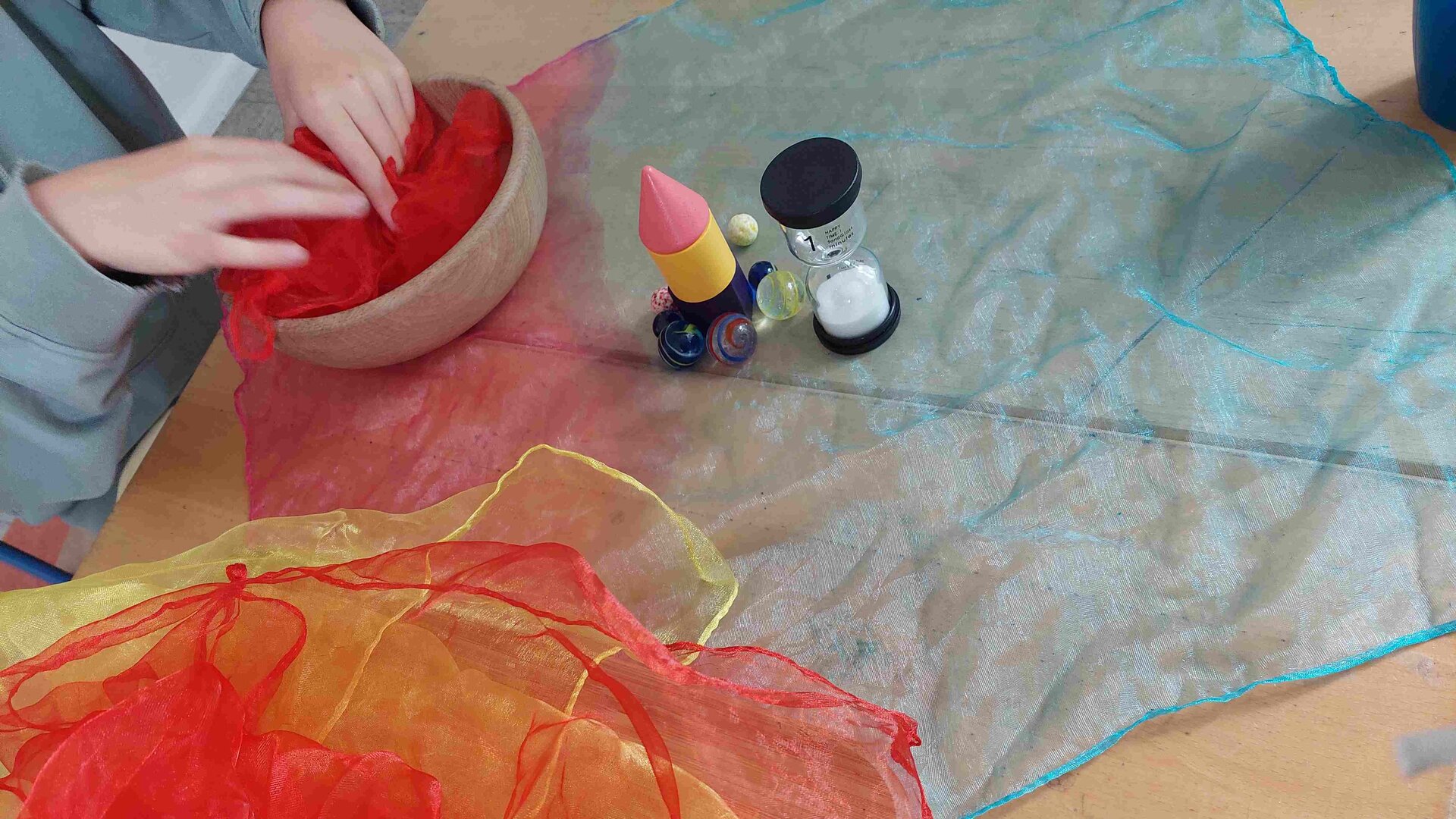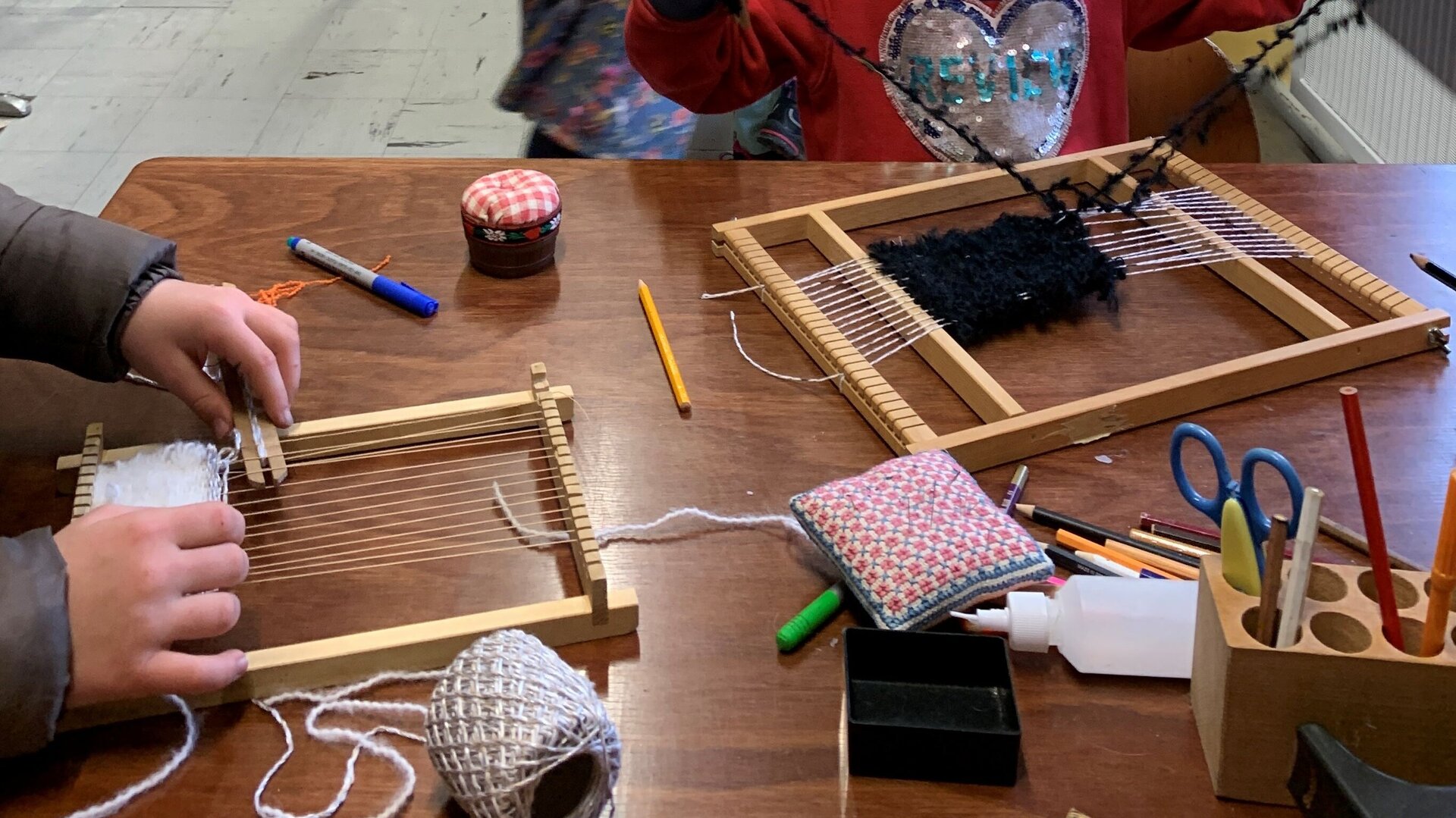 Hier kannst du die im Unterricht „Werken/textiles Gestalten“ eingeführten und erlernten Angebote weiter vertiefen und anwenden. Mit den vorhandenen Materialien der jeweils vorbereiteten Umgebung kannst du handwerkliche Arbeitstechniken (z. B. Sticken, Nähen mit der Nähmaschine, Laubsägen usw.) ausprobieren, nach deinen Vorstellungen weiterentwickeln, einfache Werkstücke fachgerecht herstellen und individuell, fantasievoll und kreativ gestalten. Durch die freie Zeiteinteilung hast du die Möglichkeit dich intensiv einer Sache zu widmen und diese nach deinem eigenen Interesse zu beginnen und abzuschließen. Klare Regeln, die du aus dem WG-Unterricht kennst, ermöglichen dir in sicherer und entspannter Atmosphäre einen respektvollen Umgang mit Material und Mitschülern.